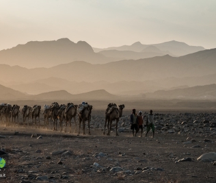 Poi vedremo le carovane partire verso l’altopiano, in lunghe file fino alla prima tappa: il fiume Saba e il villaggio di Assobole. Nel tardo partiamo per raggiungere Asso Bole, villaggio Afar all’ingresso del canyon del fiume Saba. Asso Bole è uno dei luoghi di sosta delle carovane nel lungo viaggio di ritorno verso l’altopiano. Qui vi è sempre acqua, uomini e dromedari bevono, riempiono le otri di pelle di capra, si lavano. Molti passano la notte al riparo delle pareti del canyon