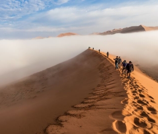 Prima colazione. Escursione nei pressi dell’antico Tsauchab River, visitando Sossusvlei, la Duna 45 e il Deadvlei. Molti turisti affermano che non c’è nessun’altra parte del deserto più impressionante di Sossusvlei, con le sue dune monumentali e l’ombra delle loro sinuose creste che cambiano continuamente in funzione dell’inclinazione solare. Montagne di sabbia dalla forma a stella arrivano fino a 325 m di altezza. Le calde tinte della sabbia, che vanno dal color albicocca, all’arancione per arrivare fino al rosso, contrastano in maniera incredibile e con il bianco dell’argilla delle depressioni alla base delle dune. Nel pomeriggio, visita al Sesriem Canyon, un piccolo e pittoresco canyon eroso dallo Tschaub River nel corso di millenni. Pranzo, cena e pernottamento in lodge.