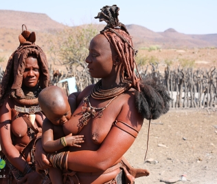 Hanno un’economia quasi soltanto di sussistenza: con la vendita di qualche capo di bestiame si procurano gli alimenti che non producono e qualche lusso, come il the ed il tabacco. Per il resto fanno tutto con le loro mani e le risorse ancestrali: gli animali domestici e la vegetazione spontanea. Le abitazioni coniche costruite con rami sigillati con argilla, le recinzione fatte con intrecci di rami di spinose acacie, gli attrezzi per la preparazione del cibo: tutto è come secoli fa. Le donne si spalmano il corpo con argilla impastata e grasso animale, si coprono solo il bacino con una gonnellina di pelli di capra e indossano originali monili dalla testa ai piedi. Quando gli altri Bantu di lingua herero migrarono verso il centro della Namibia, gli Himba se ne restarono al nord, in un’area di difficile accesso, continuando a praticare la pastorizia seminomade. Nel corso della visita al villaggio Himba, si avrà modo di scoprirne le forti tradizioni culturali. Si arriva al grandioso scenario delle Epupa Falls. Il fiume Kunene, diviso in più rami, precipita con salti verticali dentro alle strettissime gole, sollevando immense nubi di spruzzi. Baobab giganteschi, dalla corteccia del colore della roccia, sporgono dai dirupi. Qualche babbuino si esibisce sui loro rami, dondolandosi sull’abisso. Sistemazione in lodge per la cena ed il pernottamento.