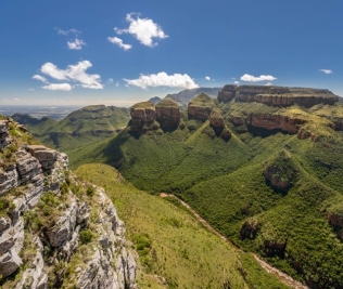 Mpumalanga, anche chiamata la terra “del sole nascente” Mpumalanga si svela attraverso gli altipiani e le pianure ricche di suggestioni con città storiche e pittoresche. In questa terra si trovano il famoso Kruger National Park e altre riserve del Sudafrica. Particolarmente interessante è la zona di Dulstroom. Uno dei luoghi di particolare interesse naturalistico è sicuramente il Blyde River Canyon, il terzo canyon più grande al mondo, lungo quasi 30 Km e profondo 800 metri, con i suoi meravigliosi punti panoramici God's Window ("la finestra di Dio") e Wonder View.