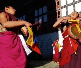 I festival religiosi (Tshechu in lingua locale) si celebrano in diverse parti del Bhutan, come tributo al Guru Padmasambhava, conosciuto anche come Guru Rimpoche (colui che è nato dal fiore di loto) che introdusse la scuola buddhista Nyingma in Tibet, Nepal e Bhutan nell’VIII secolo. Si dice che ogni 10° giorno del calendario lunare commemori un evento speciale nella vita di Padmasambhava e alcuni di questi eventi sono rappresentati durante i festival. Durante gli Tshechu, le danze sono eseguite dai monaci e dai laici che indossano costumi elaborati e maschere e ogni aspetto della danza riveste un significato simbolico. Si ritiene che, partecipare a un festival, faccia guadagnare dei meriti. Il Bhutan è un paese con una forte tradizione Buddhista Vajrayana, introdotta dal Guru Rimpoche. Il termine Vajrayana è spesso tradotto con ‘sentiero indistruttibile’, che richiede abilità e saggezza per rimuovere gli ostacoli e le difficoltà che s’incontrano sulla via dell’illuminazione. Seguire questo sentiero vuole dire avere una devozione straordinaria e un acume superiore, oltre alla guida di un qualificato maestro spirituale. Oggi, il Bhutan è l’unico paese dove il Buddhismo Vajrayana è considerato la religione di stato e dove i suoi principi guida, sono incorporati nella politica di governo. In termini generali, la felicità, elemento fondante dell’economia del paese, può essere definita come uno stato mentale positivo e il contrario della sofferenza. Poiché lo scopo ultimo del Buddhismo è di creare le condizioni che sradichino la sofferenza, i festival possono essere considerati manifestazioni di queste aspirazioni buddhiste, mostrate al pubblico allo scopo di fornire sia insegnamento sia esperienza diretta. Alcuni dei festival hanno lo scopo di purificare le anime e scacciare gli spiriti malvagi, non necessariamente con danze a carattere religioso. Inoltre, è anche un appuntamento annuale durante il quale la popolazione bhutanese, vestita con gli abiti migliori, s’incontra, prendendo una pausa dalla vita di tutti i giorni.
