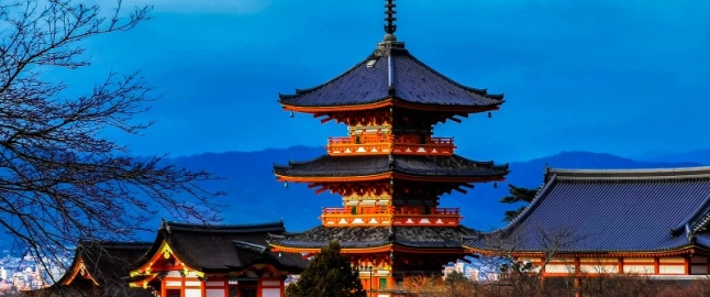 Kyoto, oggi una grande metropoli, vanta un lungo passato di capitale dell’impero giapponese, dal 794 al 1868, periodo in cui fu il centro culturale della nazione. Ancora oggi, essa è considerata come l’antica “Heian-Kyo”, capitale della pace e della tranquillità. Con i suoi 2.000 templi e le sue tradizioni millenarie, è, infatti, la “dimora spirituale” dei giapponesi. Sebbene, nel corso della sua lunga storia, abbia subito gravi distruzioni a causa di terremoti, incendi e guerre (particolarmente disastrosi si rivelarono la guerra di Onim, dal 1467 al 1476, e i bombardamenti della Seconda Guerra Mondiale), l’atmosfera e l’impianto urbanistico del Giappone feudale permangono conservati. Passeggiare per la città significa attraversare undici secoli di storia; le donne più anziane continuano ad indossare il kimono camminando lentamente lungo il canale e le geisha portano avanti il loro ruolo di raffinate intrattenitrici. Dal punto di vista monumentale invece, Kyoto possiede ben 17 siti dichiarati Patrimonio dell’Umanità dall’UNESCO. Tra questi il più celebre, nonché importante Tempio Zen, è il Tempio Kinkakuji o Tempio del Padiglione d’Oro, distrutto nel 1950 da un incendio appiccato da un monaco e poi ricostruito con l'aggiunta di una copertura di lamine d'oro a forma di foglie, sormontata da una fenice in bronzo.