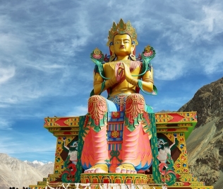 Più tardi, nel pomeriggio, si visita la cittadina di Diskit, capoluogo della provincia di Nubra, a 3.150 metri di altitudine. Il suo gompa, che sorge sulle rovine dell’antico palazzo del re della valle, fu fondato nel 1650 ed ospita un centinaio di monaci della setta dei Berretti Gialli. Abbarbicato alle rocce, che risponde appieno a quanto potremmo immaginarci da un tempio del regno di Shambala, luogo ideale per godere di una vista superba e per gustare il tramonto sulla valle! Questo Gompa è il più antico (c.a. 350 anni) e grande (c.a. 70 monaci) di questa regione; contiene statue e affreschi molto belli.