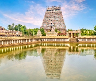 Prima colazione e partenza per Chidambaram. All’arrivo visita dell’imponente Nataraj Temple dedicato al dio Shiva.