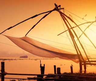 Visita del Mattancherri Palace (Palazzo olandese), della Sinagoga nel quartiere ebraico con la via degli antiquari e della Chiesa di San Francesco con la lapide di Vasco de Gama. Si assiste al particolare funzionamento delle reti da pesca cinesi, in uso dal 1350, in legno di teak e bambu.