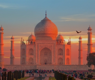 Al mattino presto, all’alba, partenza con il Pullman per la visita del Taj Mahal. Questa imponente tomba di marmo bianco, è il più grande monumento fatto erigere per amore dall'imperatore Shahjahnan, per la sua sposa favorita, Mumtaz, morta durante il parto nel 1631.