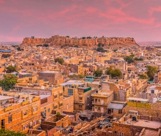 Interamente scolpita nell’arenaria gialla che le dà il nome di “Città d’oro” con il suo dedalo di vicoli antichi, di splendidi templi Jainisti e di Haveli. La popolazione ha conservato le antiche tradizioni e continua a vivere la vita di sempre. Le origini di Jaisalmer risalgono al XII secolo, quando fu fondata da Rawal Jaisal, un capo Rajput che si proclamava discendente della luna. L’antica prosperità dei principi e mercanti di Jaisalmer è testimoniata dai palazzi e da¬gli edifici splendidamente scolpiti e decorati in legno e arenaria color giallo - oro. La visita della città comprende i quali templi jainisti risalenti al 1100.