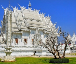 11:00 ca. Arrivo al Wat Rong Khun, celebre monumento progettato e costruito da Ajarn Chalermchai e caratterizzato da un ibrido stilistico tra architettura moderna e forme tradizionali del passato. Le sue vaste proporzioni e le fastose rifiniture ne hanno fatto oggi uno dei luoghi più fotografati dai turisti internazionali.