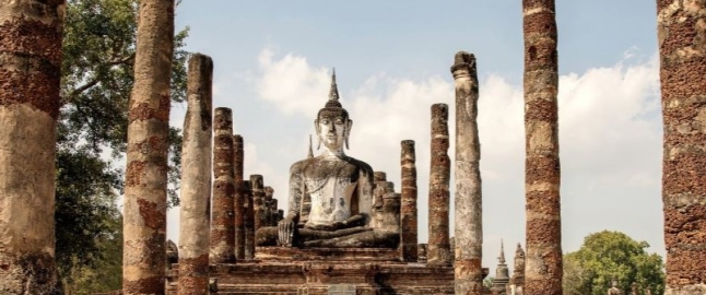 Prima colazione e partenza per la visita dei principali templi di Ayutthaya, tra cui il tempio Wat Chai Wattanaram, caratterizzato da una “cinquina” di monumentali “Phrang” al suo centro. Proseguimento delle visite con il Wat Sri Samphet, il tempio dell’antico palazzo Reale costituito da 3 gigantesche pagode campaniformi, e dopo il Wat Mongkhon Bophit, al cui interno si trova una statua del Budda seduta di gigantesche dimensioni. A seguire il Wat Mahathat che contiene una delle immagini più fotografate di tutto il parco storico, il volto del Buddha fra i rami di un albero. Sosta per il pranzo in ristorante locale. Al termine si proseguirà per la provincia di Kamphaeng Phet, dove i frutteti dominano l’orizzonte per giungere in serata a Sukhothai. Cena in hotel e pernottamento.
