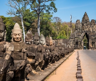 Prima colazione e inizio delle visite con il tempio di Angkor Thom, al quale si accederà attraverso il South Gate, al cui interno si trovano la Terrazza degli Elefanti, la Terrazza del Re Lebbroso ed il celebre Bayon, noto per i giganteschi volti in pietra. Successivamente visita del tempio di Ta Phrom, esempio dello stato di ritrovamento di molti altri templi dell'area di Angkor, ricoperti da radici e dalla fitta vegetazione. Pranzo e nel pomeriggio visita al monastero del Nagarajayasri, fortificato e difeso da un alto muro di cinta e contornato da un ampio canale, noto come Preah Khan. Cena libera e pernottamento.