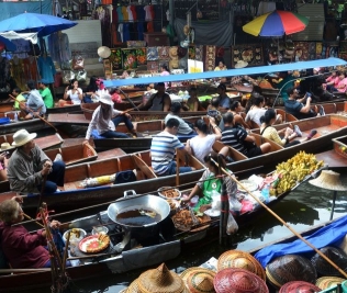 Prima colazione e partenza per il celebre Maeklong Railway Market, ovvero il mercato locale attraversato dalla ferrovia. La curiosità di questo luogo è dovuta al fatto che le merci sono disposte lungo i binari e ad ogni passaggio del treno una parte di essa viene rimossa per poi essere riposizionata subito dopo. Si prosegue alla volta della località Damnern Saduak, il più animato mercato galleggiante della Thailandia ad un centinaio di chilometri da Bangkok. La visita inizierà con una breve crociera lungo i canali rurali esterni al mercato con le tipiche “long-tail boat” fino a giungere al canale principale che ospita il pittoresco mercato dove di buon mattino i contadini si ritrovano per vendere i loro prodotti. Pranzo in corso di escursione, dove si potranno ammirare espressioni di folklore locale. Al termine delle visite rientro a Bangkok. Cena libera e pernottamento.