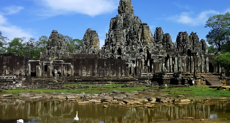 Alle 7 di mattina un conducente differente ci viene a recuperare alla guest house, parla meglio inglese rispetto al suo amico del giorno precedente, e con lui partiamo verso Angkor, circuito piccolo (quello più celebre e famoso), dove facciamo colazione in uno dei tanti bar/ristorante in fronte ad Angkor Wat ma la visita la lasciamo al pomeriggio per via delle migliori condizioni di illuminazione. Entriamo quindi ad Angkor Thom, la città vera e propria edificata dai khmer tra l’800 ed il 1400. Dalla porta sud la prima sosta è al monumento più rappresentativo di questa perduta civiltà, l’incredibile Bayon opera formata da due strutture quadrate sormontate da una circolare. Ma la particolarità sono gli innumerevoli volti di Avalokiteshvara che ci osservano da qualsiasi posizione. Il Bayon non è comunque descrivibile ed anche la vista dall’esterno poco può significare rispetto al perdersi nei suoi meandri, qualsiasi luogo è visitabile e vien da chiedersi fino a quando potrà esser così dato che il numero di persone è elevatissimo e anche prestando la massimo attenzione non si può non portare disagi alla struttura. Ma ora si può fare e conviene approfittarne, poi da qui l’escursione continua a piedi verso nord passando per il Bauphuon dove si sale solamente con pantaloni lunghi (unico monumento dove vien richiesto questo costume) altrettanto imponente anche per la vista che dall’alto regala, sempre verso nord si prosegue al Phimeanakas da cui si sale sulla terrazza degli elefanti per arrivare a quella del Re lebbroso e da lì spingersi ad ovest verso il Preah Palilay, il primo monumento dove al natura si è fatta padrona del posto. Da queste parti si trovano molte bancarelle dove rifocillarsi e rinfrescarsi, perché camminare nel mezzo della foresta non è troppo caldo ma appena scompaiono gli alberi i 35° si sentono tutti. Nella spianata del Kleang, dopo ore ore di visite, ci ricongiungiamo col nostro conducente di motoremorque per continuare verso ovest alla ricerca di altri siti raggiungibili dalla porta est. Uno di fronte all’altro si trovano il Chau Say Tevoda ed il Thommanom e poco dopo altra sosta a Ta Keo, grande tempio a forma piramidale privo però di qualsiasi decorazione, ma da dove il panorama spazia lontano. Ultima tappa al più celebre, sebben piccolo tempio della zona, Ta Prohm, la cui immagine di alberi che si mangiano la porta centrale è uno dei simboli della Cambogia. Ovviamente l’assembramento è incredibile, gli spazi sono limitati, la vista frontale dell’immagine simbolo delimitata da piccole balaustre, ma è comunque possibile girare per le gallerie interne anche se non illuminate. Sarà immagine già vista più volte ma rimane comunque fantastica, la natura che domina le costruzioni umane, qui in una lotta paritaria (mentre a Beng Mealea la natura vincerà alla grande…) con due grandi vincenti. Da qui in un attimo arriviamo (gli spostamenti col motoremorque nella foresta sono rigeneranti perché l’aria fresca si rivela una brezza fantastica visto il caldo) al bacino artificiale per le abluzioni reali del Sra Srang attorniato da bancarelle e ristoranti. Nel pomeriggio riprendiamo l’escursione al limitrofo Banteay Kdei per recarci infine alla meta delle mete, l’Angkor Wat, il più grande tempio al mondo, se non addirittura la città tempio. Nel pomeriggio la luce lo illumina di fronte, l’incanto è ancora maggiore, si entra percorrendo una prima strada rialzata nel mezzo del bacino, una volta varcato il portico ovest ci si trova di fronte il vero e proprio wat, anche qui raggiungibile su di una ennesima strada rialzata di altri 200 m. Ma già qui ci sono altri monumenti da osservare, se non fosse che il wat fa diventare tutto minuto al proprio cospetto. La vasca sinistra prima del wat regala quelle favolose immagine dell’Angkor Wat riflesso sull’acqua, meglio approfittarne quando c’è meno ressa e magari le arancioni vesti dei monaci donano maggiori cromatismi all’insieme. Una volta entrati ci sono tantissime cose da vedere, volendo ogni singolo bassorilievo (in primis le splendide apsara) è un mondo a sé per comprendere cosa avvenne qui in tempi fastosi, tanto vale perdersi e ritrovarsi ogni volta in un luogo ancora più incredibile. Unica nota, non si può accedere all’ultimo piano, il Bakan, ma poco male. Permeati da questa magnificenza, attendiamo che il tramonto si avvicini in uno dei numerosissimi ristoranti dove sorseggiare qualcosa di ritemprante dal caldo per andare verso Phnom Bakheng, la collina ad ovest da cui godersi il miglior tramonto su tutta Angkor. Peccato che l’idea sia condivisa da migliaia di persone, la salita per la sommità è un serpente unico di genti, l’ascesa al tempio (niente di particolare) regolata da numerose guardie, una volta in vetta par di essere nella bolgia più totale, dove vedere qualcosa è un’impresa, chiunque scatta a caso chissà cosa e per di più le nuvole mai viste durante il giorno coprono il sole ed il tramonto non colora le fantastiche costruzioni di Angkor. Peccato da poco, scendiamo il sentiero ancora attorniati da un mare di gente, trovare il nostro motoremorque un’impresa non da poco, poi per fortuna il conducente conosce una scorciatoia nella foresta tale da evitare il flusso di pullman che coi gas di scarico a pochi centimetri sarebbero letali. Una volta calato il sole il percorso sul motoremorque pare addirittura fresco, un buon finale per una giornata “emozionante”. Dopo una lunga doccia rigenerante tempo di cena ma a Siem Reap non c’è che l’imbarazzo della scelta, da Pub Street all’infinito.