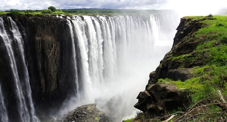 Già di prima mattina, mentre prepariamo la colazione, il rombo degli aerei che sorvolano le Cascate Vittoria è una costante, la visita alle cascate per i più abbienti avviene appunto da questo punto di vista. Prima di uscire ne approfittiamo per lavare l’auto, nei dintorni dei bagni ci sono più gomme inserite in idranti a disposizione, così non costituiremo un’offesa alla nazione. Da qui il visitor center si raggiunge velocemente, poco più di un chilometro, c’è di fronte un parcheggio gratuito dove oltre alla solita paccottiglia da souvenir vanno a ruba le mantelle parapioggia. Riprendo dallo zaino il mio k-way tecnico pensando che sia la soluzione ideale, pagato il salato biglietto d’ingresso si parte alla visione di una delle 7 meraviglie del mondo. Il rombo della caduta dell’acqua è percepibile pure da qui, prima ancora di attraversare il tratto di foresta che ci separa, primo stop alla statua di Livingstone, primo non indigeno a giungere fin qui risalendo il corso del fiume e trovandosi una barriera naturale non oltrepassabile. Qui al Devil’s Cataract comprendiamo da subito che non c’è protezione dall’acqua che serva, data anche la temperatura elevata e l’umidità se si procede completamente chiusi nelle protezioni più estreme (ma col fronte incredibile di acqua che arriva ho paura che nulla resista) si finisce per sudare all’ennesima potenza, così meglio fregarsene, prendere tutta l’acqua possibile, sandali, pantaloni corti e t-shirt, tanto usciti dal fronte della cascata ci si asciuga in un attimo. C’è ovviamente molta gente, mai vista nei precedenti giorni in giro per lo Zimbabwe, tutti arrivano vedono e ripartono in aereo (aeroporto situato circa 20 km a sud della città), seguiamo così il percorso che entra ed esce dalla foresta portandoci più volte di fronte alla cascata che in questo periodo di acqua non al massimo ma comunque crescente significa più cascate. Onestamente mi aspettavo uno spettacolo più emozionante od esaltante, sarà che il canyon della parte ovest non permette di rendersi conto della profondità della caduta (non si superano i 108 metri) ma l’unico vero punto spettacolare è il Danger Point e devo ammettere che gli addetti al parco lasciano goderselo al massimo. Nessuna protezione, si sale e scende sulle rocce che affiorano regalando la vista che spazia di fronte verso le Rainbow Falls, sulla parte est che sarebbe quella dello Zambia ed anche sul gorge che si crea in uscita dove è possibile risalire via rafting, difficile farlo con uno scenario più emozionante. Sono completamente lavato in ogni dove, per girarsi questa punta in effetti potenzialmente pericolosa meglio avere suole aderenti (ho sandali di basso livello ma con suole in vibram e non ho avuto problemi), si può rimanere quanto si vuole, qui la cascata dell’acqua non è nemmeno così intensa come in altri punti tipo di fronte alla Main Falls o alla Horseshoe Falls, ma in ogni caso l’acqua è talmente tanta che la mia fida fotocamera termina il suo lavoro affogata, ritornando in uso solo 3 giorni dopo e con evidenti macchie su display e sensore. Se le prime viste mi avevano deluso, forse causa di aspettative eccessive, da Danger Point esco con un’impressione ben differente, si continua fino alla vista sul Victoria Falls Brigde, il passaggio di confine che sorvola la gola. Per accederci e arrivare nella parte dello Zambia occorre farsi rilasciare il Bridge Pass, gratuito al posto di frontiera evitando così la necessità di un visto con doppia entrata (si risparmiamo 5$, non penso che abbia così senso azzardare un visto ad entrata singola), e percorrere la via intasata dai camion che trasportano di tutto tra le due nazioni. Ci sono molti venditori di souvenir o passaggi auto, ma non disturbano più di tanto, sul ponte proprio a metà il gabbiotto dove fare bungee jumping, esclusiva location direi. Proseguiamo al termine del ponte già in Zambia dove la vista della gola e delle Armchoir Falls in concomitanza finalmente di un minimo di sole e cielo blu regala ulteriore spettacolo. Col sole arrivano anche un caldo e un’umidità incredibile, ogni passo una sofferenza, ma poco male. Dopo aver girato anche questa parte rientriamo sui nostri passi, recuperiamo la Ford Ranger per salire a monte del fiume Zambesi, allo Zambesi National Park, parco che costeggia il fiume quasi fino al confine col Botswana, al momento però visitabile solo nella prima parte e solo lungo i sentieri a bordo fiume, impraticabile quelli interni. Si accede ai tanti siti definiti picnic, non raggiungibili nemmeno i camping e i resort interni, optiamo per fermarci al n° 15, vista splendida sul grande fiume che a pochi chilometri si butterà nelle cascate. Non c’è nessuna protezione che possa tenere alla larga gli animali, fortuna (o sfortuna, dipende dall’obiettivo finale) che di felini non ci sia traccia, ma rimaniamo sempre vigili mentre ci prepariamo un veloce spuntino, le scimmie son sempre minacciose, e il passaggio di un elefante o giraffa mai piacevole data la loro mole. Appena termina la zona dei picnic magicamente il parco si anima di animali, giraffe, kudu, impala, waterbuck, pare tutto esaurito solo che il sentiero diventa un black cotton da cui usciamo a fatica dopo pochi metri. Rientriamo così al camp, ci scegliamo una nuova piazzola e dopo un tifone che si è abbattuto sull’area avendo trasformato il camp in acquitrino provo un salto alla reception per recuperare info sul passaggio di frontiera e sulle possibili visite del periodo in Botswana. Il wi-fi, come il giorno precedente è lentissimo, recuperate le info e confermato che il gasolio costi quasi la metà che qui rientro alla piazzola, dopo doccia e cena ci viene pure regalato uno spettacolino indigeno che sarebbe a servizio di un gruppo inglese dedito all’alcol già di pomeriggio. Queste rappresentazioni mettono però tristezza, gente che si maschera per l’occorrenza, potrebbero farlo qui come a domi