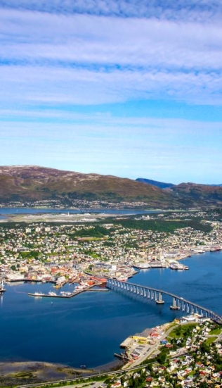 Tromso posta oltre il circolo polare, viene considerata la porta d'accesso al Polo Nord, ed è stato il luogo di partenza di molte spedizioni artiche. Ha ricevuto lo status di città nel 1794 ed è considerata la capitale della Lapponia. Tromso è la settima città norvegese per popolazione e detiene alcuni singolari primati: è la città con più di 50000 abitanti più a Nord del mondo. Ha la diocesi Cattolica, la distilleria e il Parco botanico più a Nord del mondo. Data la sua latitudine, Tromso è soggetta al fenomeno del sole di mezzanotte (dal 21 maggio al 21 luglio) e della notte polare (dal 21 novembre al 21 gennaio). Il centro cittadino è situato su Tromsoya (isola di Tromso) ma l'agglomerato urbano si sviluppa anche ad Est, sulla terraferma, con Tromsdalen ("la valle"), e ad Ovest su Kvaloya (isola delle balene). Da entrambi i lati ci sono ponti che collegano il centro con le periferie, ed addirittura un tunnel sottomarino verso Tromsdalen.