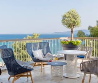 I Deluxe Bungalows nella pineta sono appartati e godono di una magnifica vista sul mare, un vero e proprio rifugio rilassante per genitori e figli. La loro bella atmosfera è resa ancor più speciale dai colori che tingono il Resort, con le sfumature di blu e di bianco tipiche della cultura greca.