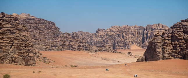 Dopo la prima colazione partenza in fuoristrada per la Hisma Valley (400 km, 5 ore circa), area caratterizzata da maestose formazioni grandiose simili a quelle che si trovano in Giordania; quest’ultima è famosa per il suo deserto del Wadi Rum, ma è meno noto che le sue iconiche formazioni di arenaria si estendono oltre il confine con l'Arabia Saudita fino a 200 Km a sud, nel grandioso Wadi Qaraqir. La parte principale di Jebal Hisma si trova tra il maestoso Jebel Al-Lawz a ovest e la pianura che circonda la città di Tabuk a est. Il nome "Jebal", che significa "insieme di montagne", indica che ad Hisma non c’è solo un monte ma migliaia di formazioni rocciose che si estendono per centinaia di chilometri, ognuna di dimensioni e forme uniche, dando origine ad un paesaggio incredibile. Jebal Hisma è la patria dell'arte rupestre con migliaia di rappresentazioni cufiche arabe, tamudiche e nabatee. Svariate formazioni di arenaria hanno creato profondi canyon e imponenti rocce giganti, le cui sagome sono un vero capolavoro della natura. Il wadi più impressionante è il famoso Wadi Dham, a est di Jebal Hisma, la cui valle sabbiosa si snoda per oltre 20 chilometri. Questo deserto, caratterizzato dalle spettacolari forme dei massicci di arenaria e dalla sabbia multicolore, offre scenari davvero unici. Rientro a Tabuk per la cena ed il pernottamento.