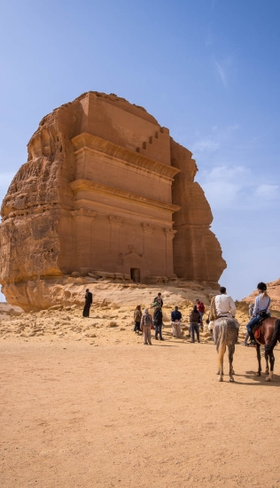 La giornata è interamente dedicata alla visita di Al Ula e dintorni, luogo di nascita di due antichi regni arabi. Le visite ai siti di Hegra, Dadan e Ikmah saranno effettuate a bordo di Land Rover vintage. Durante il I millennio a.C., Al Ula vide sorgere l'antica città di Dadan che divenne la capitale di due regni successivi, Dadan e Lihyan, che governarono il nord-ovest della penisola arabica. Jabal Ikmah, una biblioteca aperta di iscrizioni, arte rupestre e petroglifi, incastonata in uno splendido canyon desertico. Hegra, è il sito storico più iconico del Regno dell'Arabia Saudita e il primo ad essere elencato come patrimonio mondiale dell'UNESCO, nel 2008; faceva parte del Regno Nabateo, che comprendeva anche la famosa città di Petra, nell'attuale Giordania. I Nabatei lo chiamavano Hijra (come appare in alcune antiche iscrizioni nel sito), mentre i i Romani lo chiamavano Hegra. Il regno nabateo si sviluppò dal II secolo a.C.. I Nabatei erano mercanti arabi attivamente coinvolti nel commercio dell'incenso originario dell'antico Yemen da cui traevano la loro grande ricchezza. L'esteso insediamento del sito ebbe luogo durante il I secolo d.C., quando passò sotto il dominio del re nabateo Arêtes IV Philopatries (Al-Harith IV, 9 – 40 a.C.), che fece di Madain Saleh (nome attuale dell’antica Hegra) la prima capitale del regno, prima di Petra che si trova a 500 chilometri a nord. Scavati in rocce color miele che si elevano dalla sabbia, i monumenti funebri formano una necropoli che circonda il centro di Hegra. Sebbene sia rimasto poco dell’architettura in fango e pietra della città murata, le tombe sono sopravvissute a secoli di erosione e sole intenso, mantenendosi in buone condizioni, e gli oltre 130 pozzi superstiti creati originariamente dai nabatei, testimoniano la loro competenza nella gestione dell’acqua. Tappa alla “roccia dell’elefante”, iconica meraviglia geologica scolpita dalla natura. Rientro in hotel per la cena ed il pernottamento.
