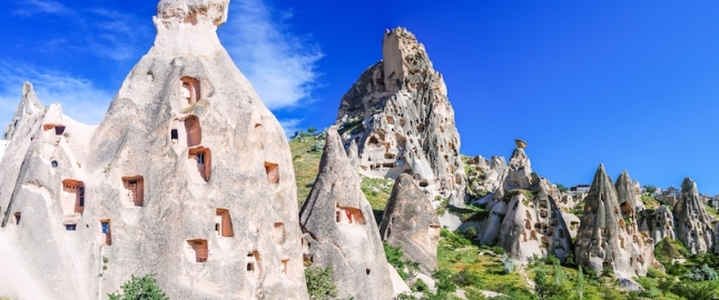 Prima colazione in albergo. Visita alla Valle di Devrent, dove la roccia erosa ha creato picchi e obelischi, è famosa soprattutto per le pietre di tufo a forma di animali, tra cui quello riconoscibile e visibile dalla strada è il cammello. Proseguimento con la visita al Museo all’aperto di Goreme, la più spettacolare e famosa tra le valli della Cappadocia, disseminata di colonne rocciose intagliate nel tufo che prendono il nome di "camini delle fate" perché conferiscono alla valle un aspetto fiabesco. Sosta in una cooperativa dei tappeti per scoprirne la lavorazione. Pranzo in ristorante. Visita esterna alla Cittadella di Uchisar situata all’interno di un cono di roccia tufacea; alla Valle di Guvercinlik, detta pure Valle dei Piccioni e a Mustafapasa, anticamente chiamata Sinasos che è un’incredibile cittadina della Cappadocia. Fino agli inizi del XX secolo il piccolo villaggio era abitato da famiglie di greci ortodossi e si caratterizza per gli edifici scavati nella roccia a testimonianza del prospero passato ellenico. Costruite in pietra, con splendidi colonnati, finestre ed aperture, porte intagliate e decorate con disegni dipinti di celeste, gli edifici di Mustafapasa sono un documento storico sulle tradizioni che sopravvivono attraverso i secoli. Rientro in albergo. Cena in albergo e pernottamento.