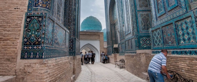 Dopo il pranzo in ristorante locale visite all'Osservatorio di Ulugbek, costruito dal nipote di Amir Temur, astronomo e scienziato. Oggi rimane solo una parte dell'astrolabio di 30 metri, rispetto ai 6 piani originari; infine, si ammirerà la Necropoli di Shahi-Zinda, un complesso di mausolei costruito intorno a quella che probabilmente è la tomba di Qusam Ibn Abbs, un cugino del profeta Maometto, che si dice abbia portato la religione islamica nella regione nel VII secolo.
