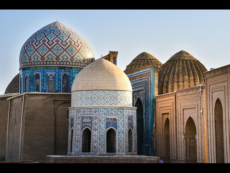 Visita infine al mausoleo di Gur-Emir, uno dei capolavori dell’architettura timuride che rappresenta il luogo di sepoltura di Tamerlano (Timur), il celebre condottiero e fondatore dell’Impero timuride, morto nel 1405, e altri membri della dinastia. L’edificio dall’eleganza e dalla bellezza sorprendente, è rappresentativo dell’arte islamica con elementi che hanno ispirato altri celebri edifici dell'Asia centrale e persino il Taj Mahal in India. Dominata da una maestosa cupola turchese smaltata, che si innalza oltre i trenta metri, il mausoleo incanta per la raffinatezza dei suoi dettagli: le piastrelle in maiolica dai motivi geometrici e floreali ricoprono ogni superficie con eleganza, mentre l’imponente portale d’ingresso (iwan) si apre come un sipario di mosaici e iscrizioni coraniche. All’interno, lo spazio sorprende per la sua atmosfera raccolta e sontuosa, dove luce, oro e silenzio si fondono in un equilibrio perfetto. Un vero capolavoro dell’arte timuride