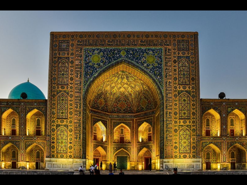 Pranzo e cena in ristorante locale. In serata, dopo cena, faremo ritorno al mausoleo di Gur Emir per ammirarlo dall’esterno, avvolto nella suggestiva luce notturna.