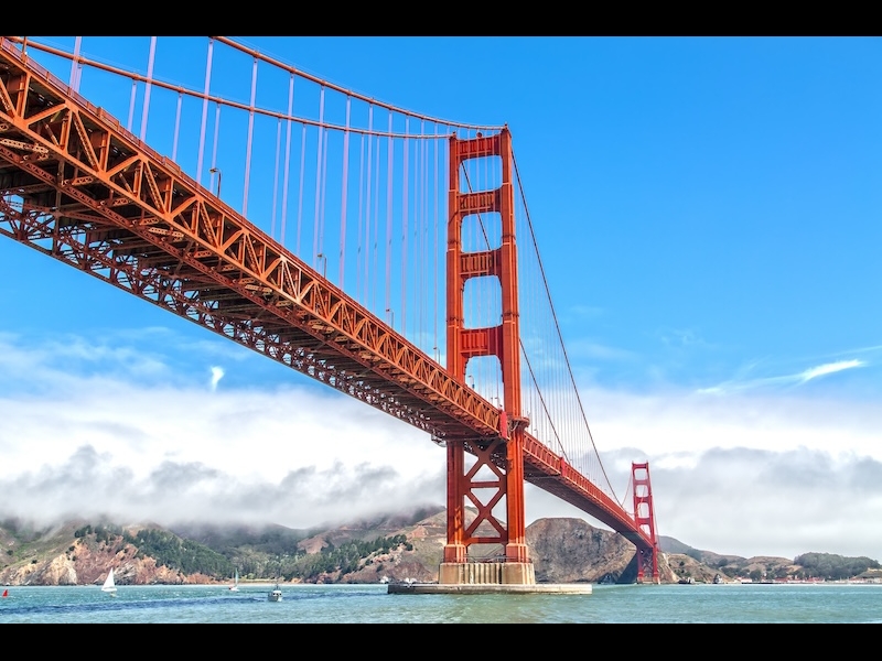 Il simbolo della città, universalmente noto, è il ponte Golden Gate, che si staglia nel panorama della baia di San Francisco con l’inconfondibile colore arancione e le torri alte 210 metri.