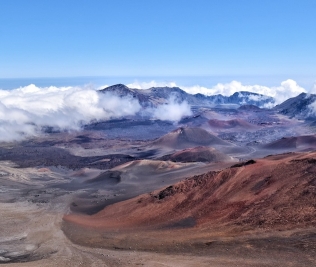 L'Haleakala Crater è una grandiosa meraviglia geologica. Il più grande vulcano inattivo del mondo assomiglia alla superficie lunare e ha il fondo del cratere (apparentemente senza vita) disseminato di maestosi coni di cenere vulcanica. L'Haleakala National Park comprende la zona attorno al cratere e offre fantastici panorami dall'orlo del cratere e bellissime passeggiate sul fondo, estendendosi dal cratere fino ai laghetti di Oheo Gulch sulla costa a sud di Hana.
