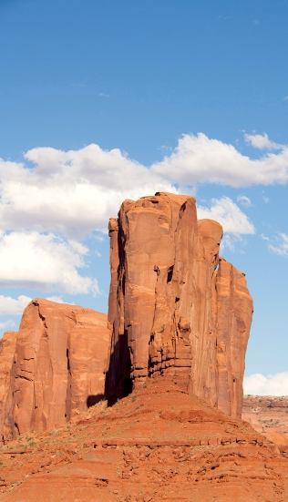 un'icona degli Stati Uniti occidentali. Il pianoro desertico è in realtà di origine fluviale (Colorado Plateau) e si trova al confine tra Utah e Arizona in un'area abbastanza isolata quanto estesa che dista più di 70 km dalla cittadina più vicina: Kayenta. La strada che conduce alla Monument Valley nella parte terminale è altrettanto famosa: essa segue un percorso rettilineo in leggera discesa che dà al viaggiatore l'impressione di calarsi all'interno della valle. La strada principale che conduce al luogo è la Highway 163. Il territorio è prevalentemente pianeggiante ad eccezione del fatto che la pianura è cosparsa da una sorta di guglie (geologicamente definite "testimoni di erosione"), dette butte o mesas. Questi edifici naturali formati da roccia e sabbia hanno la forma di torri dal colore rossastro (causato dall'ossido di ferro) con la sommità piatta più o meno orizzontale; alla base si accumulano detriti composti da pietrisco e sabbia.