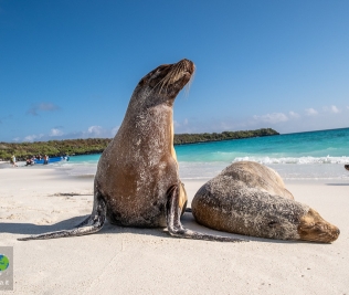 I leoni marini si rilassano pigramente su Gardner Bay, una spiaggia di sabbia bianca che è una delle più lunghe delle Galapagos. Questa spiaggia è un luogo perfetto per lo snorkeling, ed è possibile nuotare a Tortuga Islet di fronte alla spiaggia per scoprire l'abbondante vita marina.