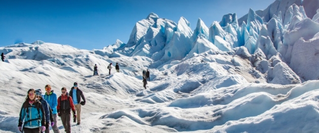 Prima colazione in albergo. Escursione (collettiva in spag/ingl) al ghiacciaio Perito Moreno, situato nel Parco Nazionale Los Glaciares, dichiarato dall'UNESCO Patrimonio Naturale dell'Umanità nel 1981. Il ghiacciaio Perito Moreno, il più famoso e spettacolare di tutti, ha un fronte di 3000 m. di lunghezza e un'altezza di 60 m., da cui si staccano costantemente gigantesche torri di ghiaccio che cadono nel lago sottostante. Visiterete questa meraviglia della natura in modo alquanto insolito, effettuando un minitrekking con ramponi sul ghiacciaio (circa 1h30m): un'esperienza più attiva rispetto all’escursione tradizionale, che permette un vero contatto con l’azzurro ghiaccio millenario. Prima di rientrare a El Calafate si sosterà alle passerelle panoramiche per una vista di insieme di questa meraviglia. Rientro a Calafate nel pomeriggio.