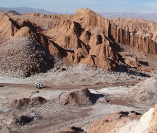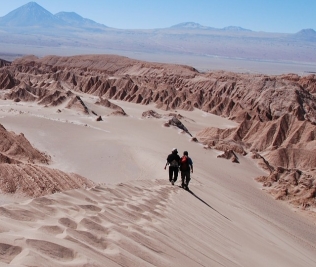 Lasciamo l'hotel dirigendoci verso la Cordillera de la Sal, dove si trovano la Valle della Luna e la Valle della Morte. Questa catena montuosa è costituita da un gruppo di affascinanti sculture rupestri che, milioni di anni fa, facevano parte di un grande lago e che ci condurranno ad un sorprendente punto panoramico dove potremo apprezzare la valle e le nostre prossime destinazioni. Proseguiremo verso la Valle della Morte, conosciuta anche come Valle di Marte, che si distingue per la particolarità delle sue formazioni rocciose e per il deserto assoluto del suo paesaggio: in questo luogo non si trova nessun tipo di pianta o insetto ed è stato classificata come una delle zone più inospitali del nostro Paese. Successivamente visiteremo Las Tres Marías, un'interessante formazione geologica che si trova accanto a un'antica miniera di sale. Al tramonto, il tour termina presso la grande duna di sabbia della Valle de La Luna, così chiamata per la sua somiglianza con il paesaggio lunare e che offre uno splendido spettacolo di colori nel momento in cui il sole inizia a tramontare.