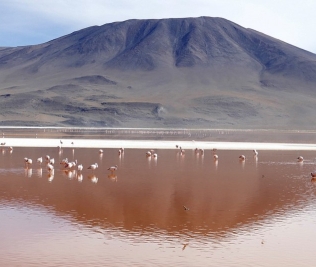 Attraversando il Desierto de Siloli, raggiungiamo la curiosa formazione di roccia soprannominata Arbol de Piedra e a seguire la Laguna Colorada, la più famosa di tutte, dal colore rosso intenso e popolata spesso da grandi colonie di fenicotteri.