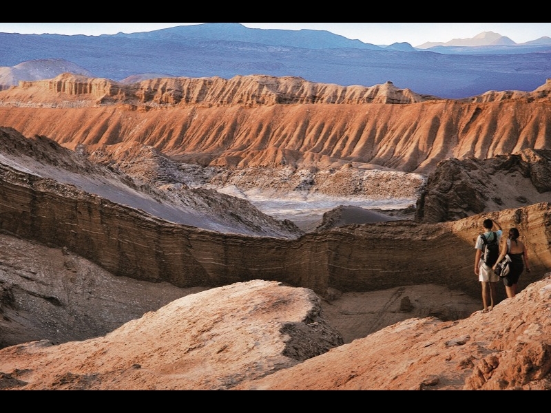 trasferimento in tempo utile in aeroporto e partenza con volo per Calama. Arrivo all'aeroporto di El Loa e trasferimento a San Pedro de Atacama (circa 1 ora e mezzo di strada) attraversando la "Cordillera Domeyco e de la Sal". Nel tardo pomeriggio visita alla Cordigliera del Sale, la Valle di Marte (chiamata anche Valle della Morte) e la Valle della Luna, dove si potrà ammirare uno spettacolare tramonto sul deserto di Atacama. Pernottamento in albergo.