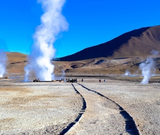 Partenza prima dell'alba (05:00 del mattino circa) per i geyser del Tatio. Arrivo e visita guidata del campo geotermico, dove si osservano le imponenti fumarole che proprio all'alba offrono lo spettacolo più suggestivo. Colazione al sacco contemplando questo scenario di rara bellezza. Durante il rientro a San Pedro de Atacama sosta lungo il percorso per un bagno rigenerante nelle piscine delle suggestive Terme di Puritama. Il resto della giornata è a disposizione per la visita in autonomia del villaggio e del suo mercato artigianale.